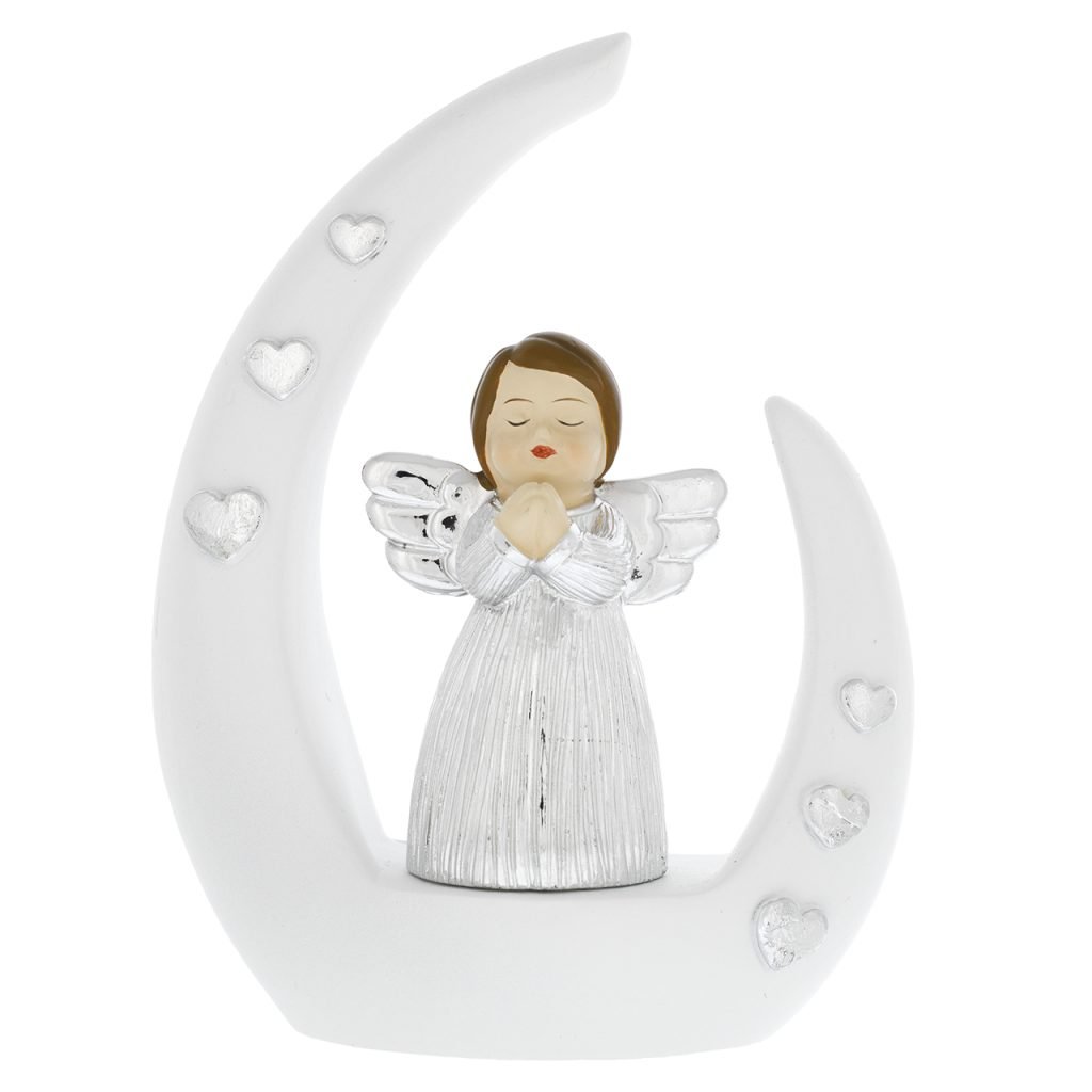 ANGIOLETTO SU BASE STILIZZATA BIANCA – CON MANI GIUNTE G