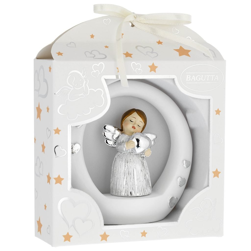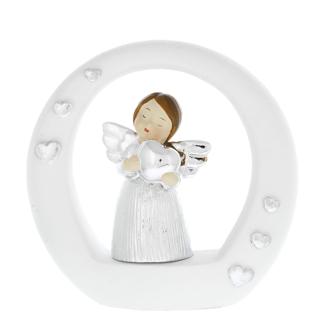 ANGIOLETTO PICCOLO SU CERCHIO STILIZZATO BIANCO – CON CUORE G