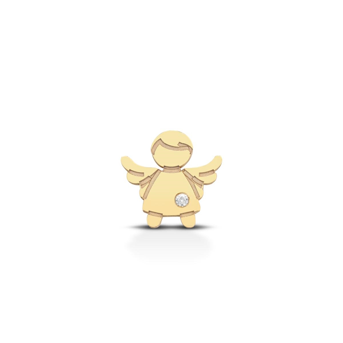 blister Angioletto in oro giallo titolo 750/°° e diamante taglio brillante ct. 0,01 colore g purezza vs, il ciondolo è predisposta di una maglia dietro da poter inserire la collanina.