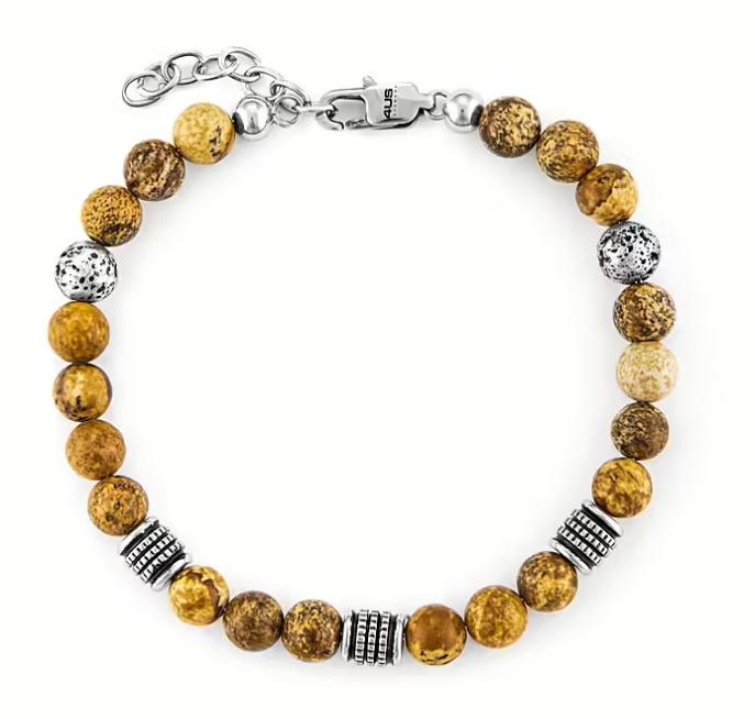Bracciale da uomo di 4US Cesare Paciotti. Il gioiello é realizzato in acciaio e diaspro. La lunghezza regolabile 18+4cm. La referenza è: 4UBR6242.