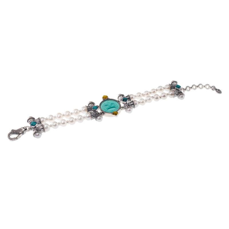 Bracc. Pasta Vitrea con Maschera, Perle e Pietre