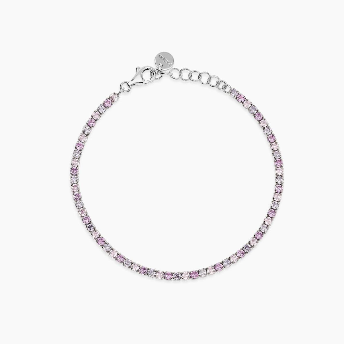 Bracciale regolabile da bambina in argento rodiato con tormaline sintetiche e zirconi rosa.