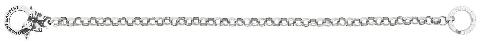 Un bracciale essenziale e raffinato, pensato per accogliere i tuoi charms in unÆelegante composizione personalizzata. Realizzato in catena rol? dÆargento, questo gioiello si distingue per la chiusuracon brisÚ logato e un delicato decoro a forma di Farfalla, fuso a cera persa secondo lÆantica tradizione orafa. Interamente fatto a mano in azienda.