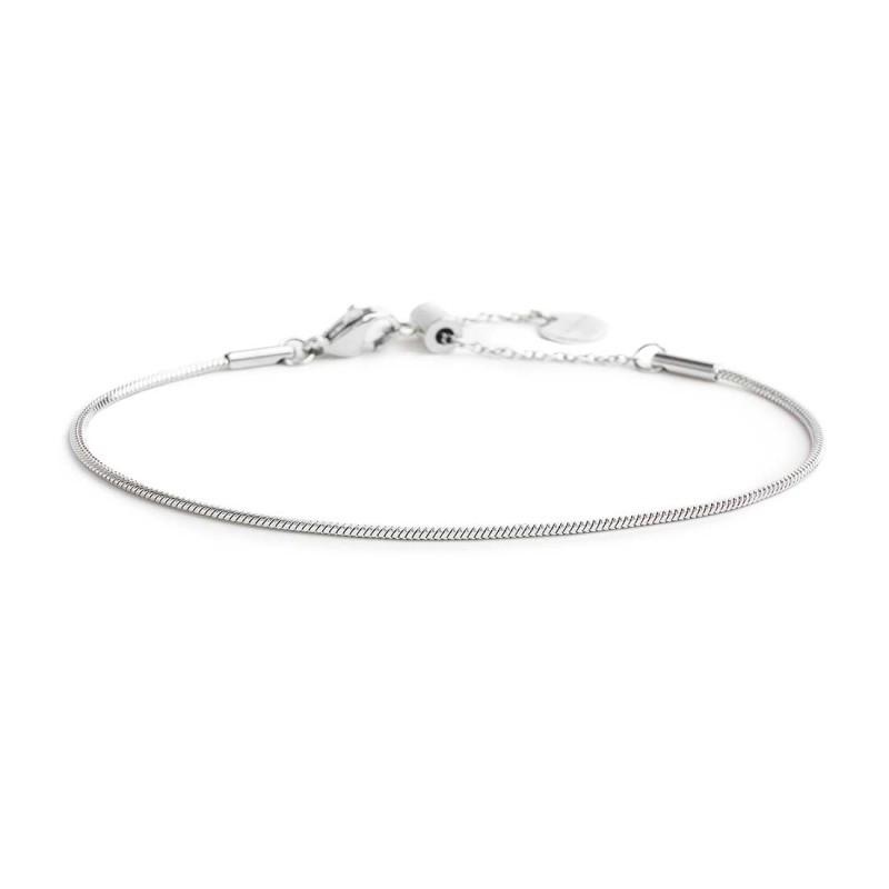 Bracciale con catena snake quadrata con larghezza 1,50 mm. Lunghezza totale 19 cm regolabile tramite cursore da 19 cm a 15 cm. Marlù logo tag presente all' estremità.