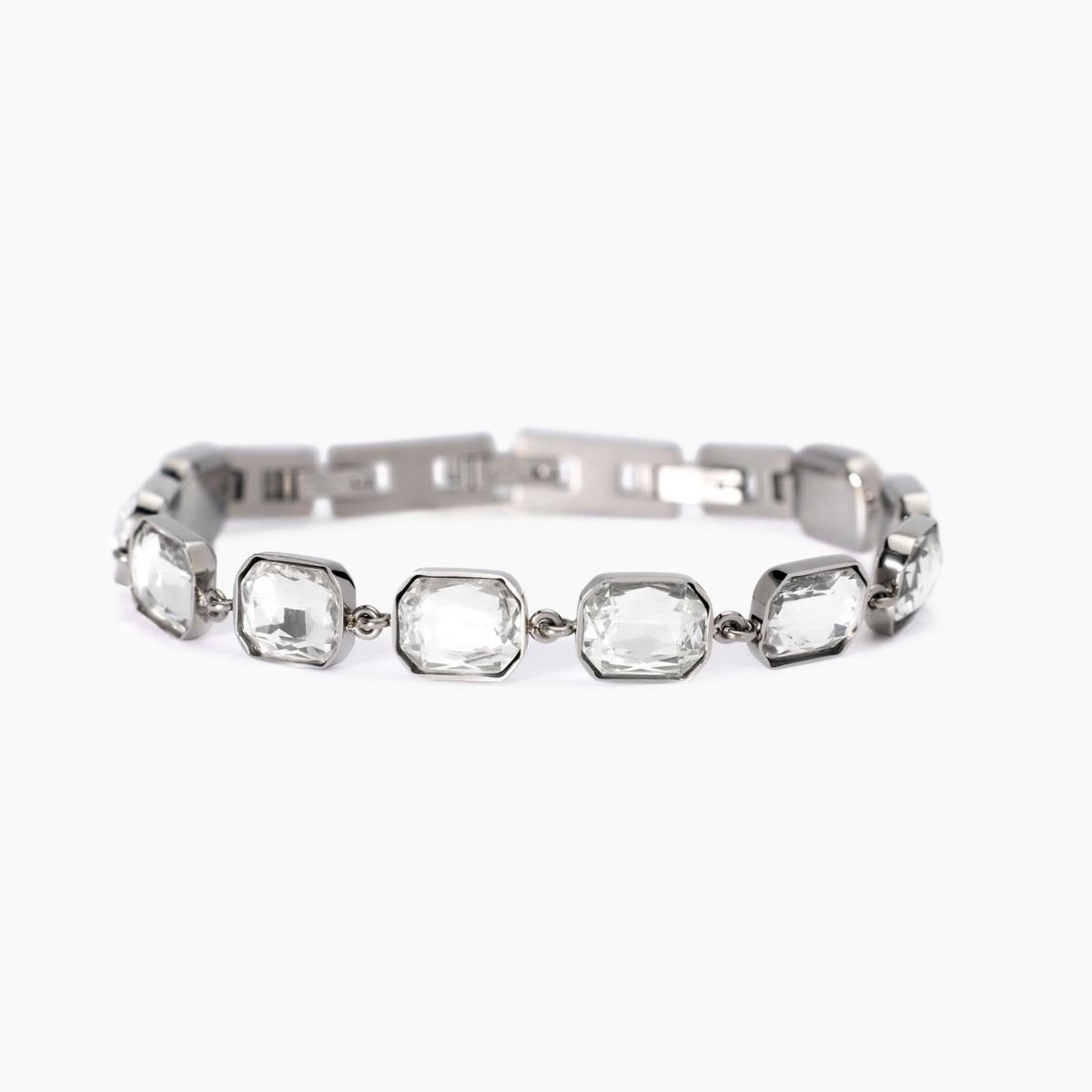 Bracciale regolabile con cristalli rettangolari bianchi.