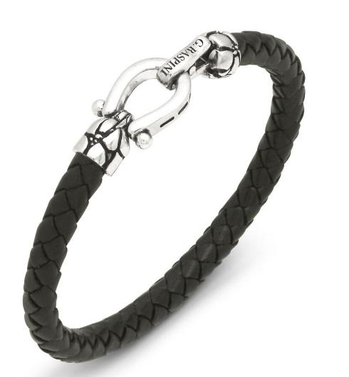 Un bracciale in pelle nera intrecciata che esprime con forza e raffinatezza l’anima maschile del brand. La texture materica, intensa ed elegante, dialoga con la chiusura in argento, elemento funzionale e distintivo al tempo stesso. I due cappucci decorativi, impreziositi dalla texture croco e realizzati anch’essi in argento, completano il design con un segno deciso e sofisticato. Un gioiello dal carattere autentico, interamente realizzato a mano in azienda.