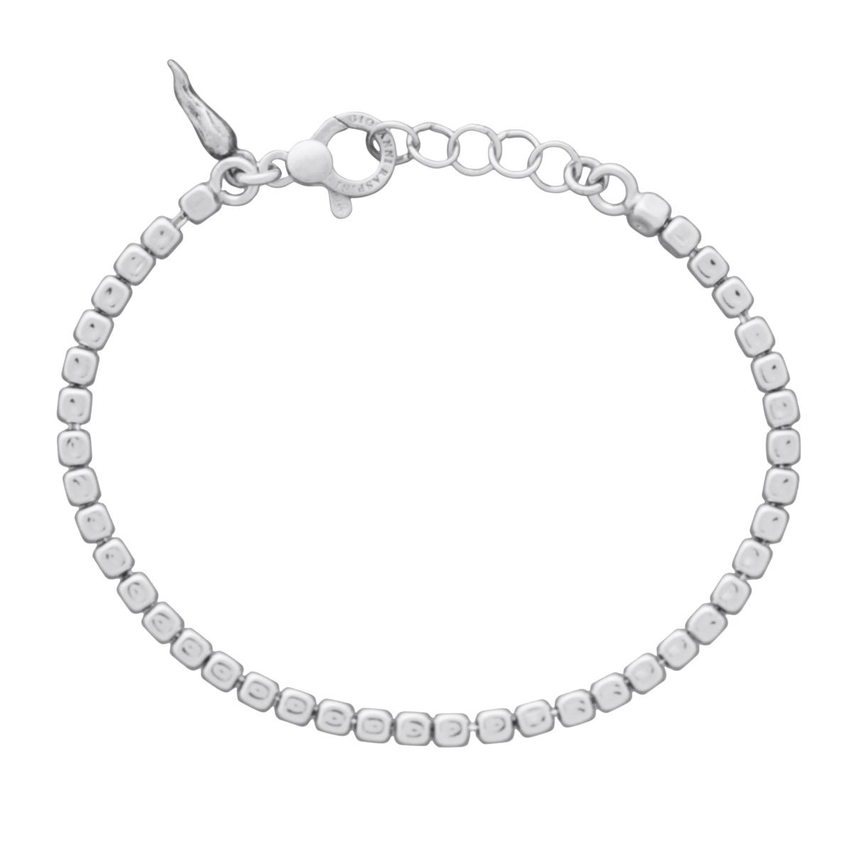 Una particolare catena "a dadini" dà luogo a questo bracciale in argento. Minimal, contemporaneo, creata per chi ama la bellezza sobria e luminosa dell'argento. Realizzato in home.