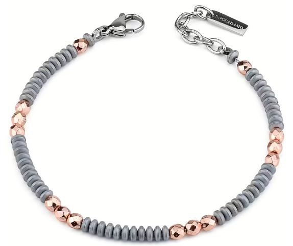 Bracciale da Uomo di Boccadamo della collezione Man della linea Man. Bracciale in acciaio rodiato con ematite opaco ed ematite rosa.. Materiale: acciaio 316L anallergico nichel free. Misure: lunghezza regolabile fino a cm 22. Chiusura: con moschettone.
