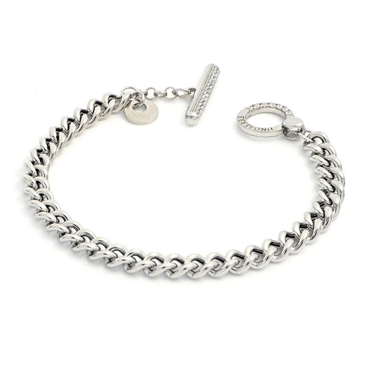 Bracciale in Argento 925 con catena grumetta ovale e chiusura a T-bar con pietre cubic zirconia. Un gioiello semplice, ma luminoso e raffinato. Perfetto da indossare in semplicità o in abbinamento adaltri gioielli per creare il tuo personale mix & match. Misura 18 cm.