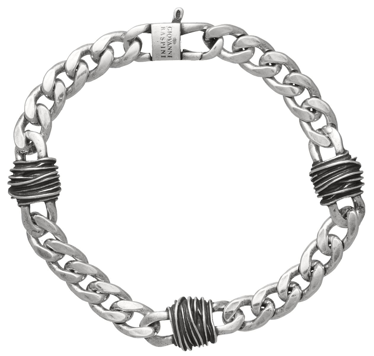 Una catena classica che diventa gioiello contemporaneo, arricchita da tre decori in fusione. Da notare la chiusura a moschettone dal design in continuitÓ stilistica con la catena. Materia che si fa stile, per una eleganza maschile senza tempo.