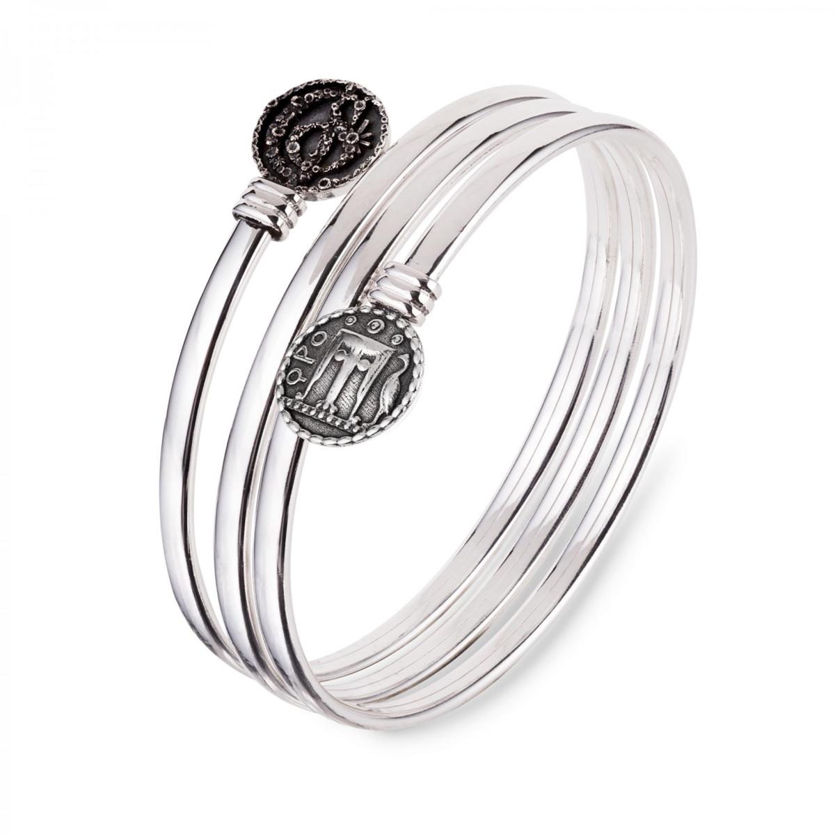 Un Bracciale rigido multigiro dalle linee essenziali ed eleganti, arricchito dalla riproduzione di una moneta magnogreca e dal logo del brand Gerardo Sacco, in un incontro perfetto tra mito e magia mediterranea.