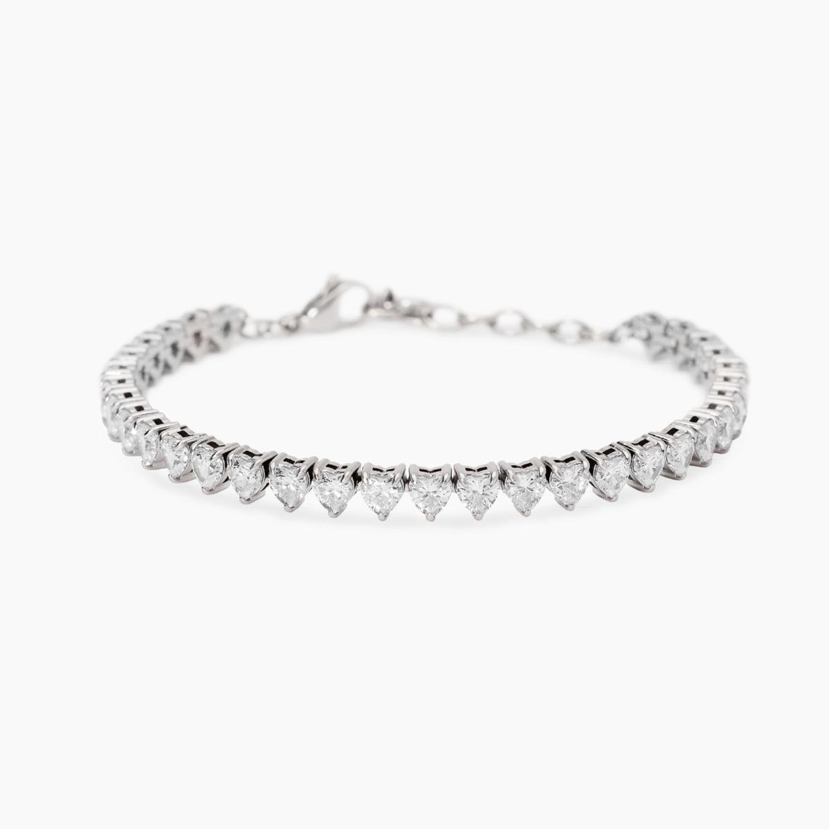 Bracciale tennis regolabile con zirconi bianchi taglio cuore.