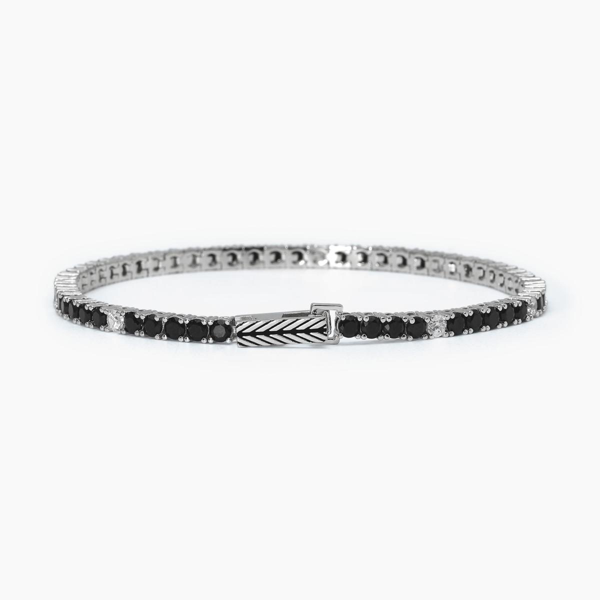 Bracciale tennis da uomo in argento rodiato con zirconi alternati bianchi e neri.