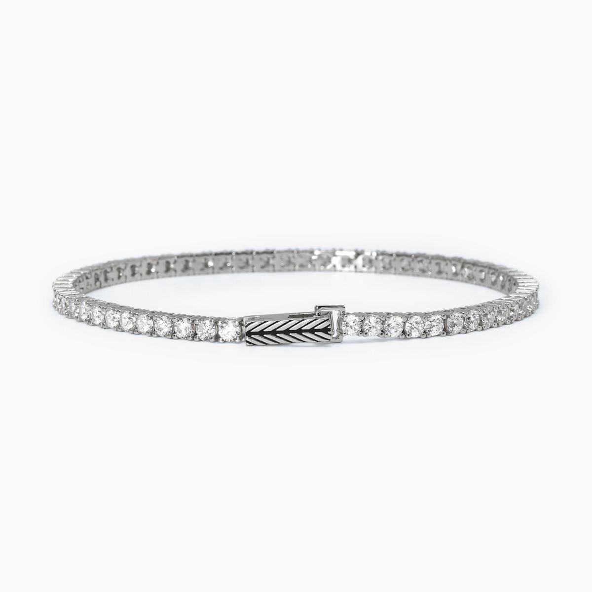 Bracciale tennis da uomo in argento rodiato con zirconi bianchi.
