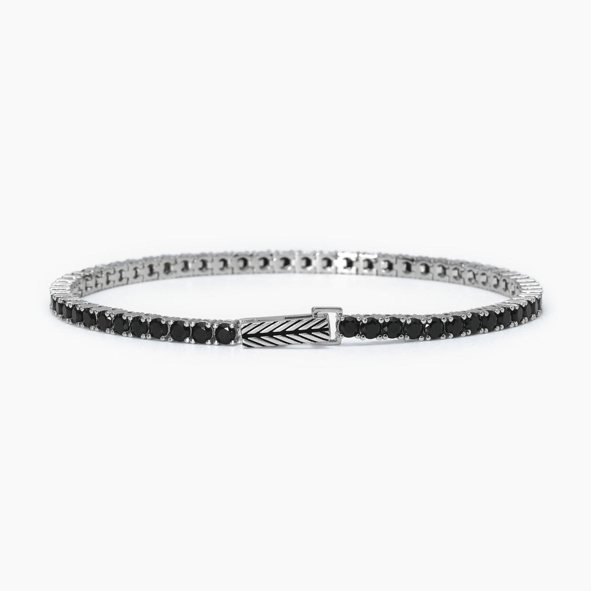 Bracciale tennis da uomo in argento rodiato con zirconi neri.