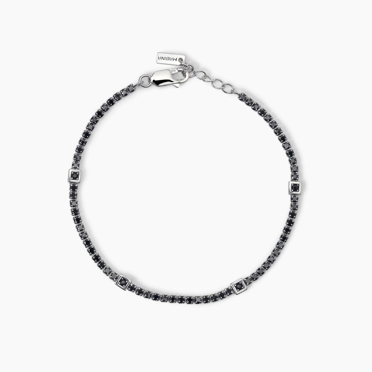 Bracciale tennis uomo regolabile in argento rodiato con inserti quadrati in zirconi neri.
