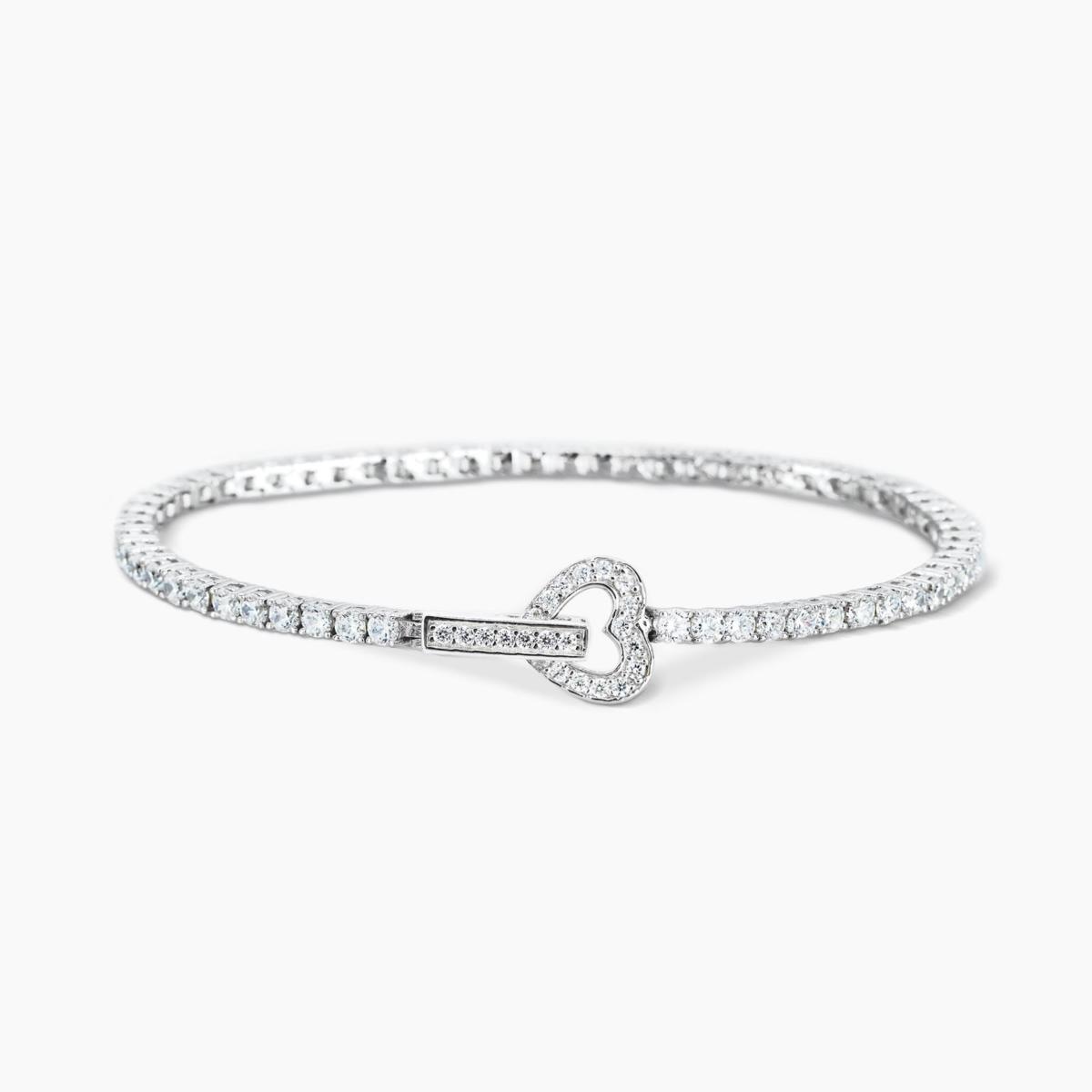 Bracciale tennis in argento con zirconi e chiusura a cuore