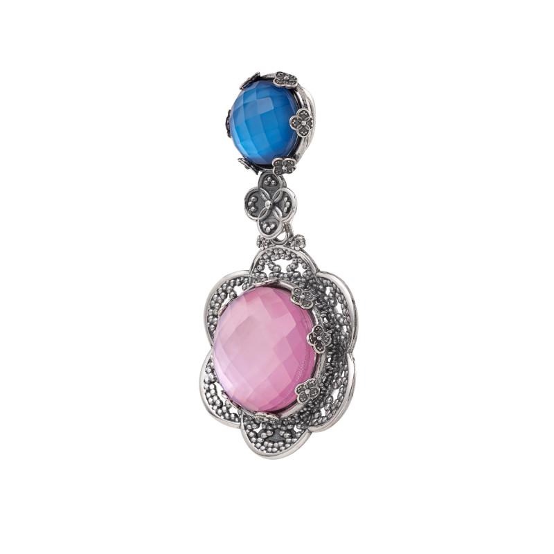 Un raffinato ciondolo che riproduce una ninfea dai petali aperti, con la parte centrale esaltata da una pietra lucente e sfaccettata. La contromaglia Þ completamente celata dal colore tenue di una gemma incastonata tra piccoli fregi esempio di preziosa manualitÓ.