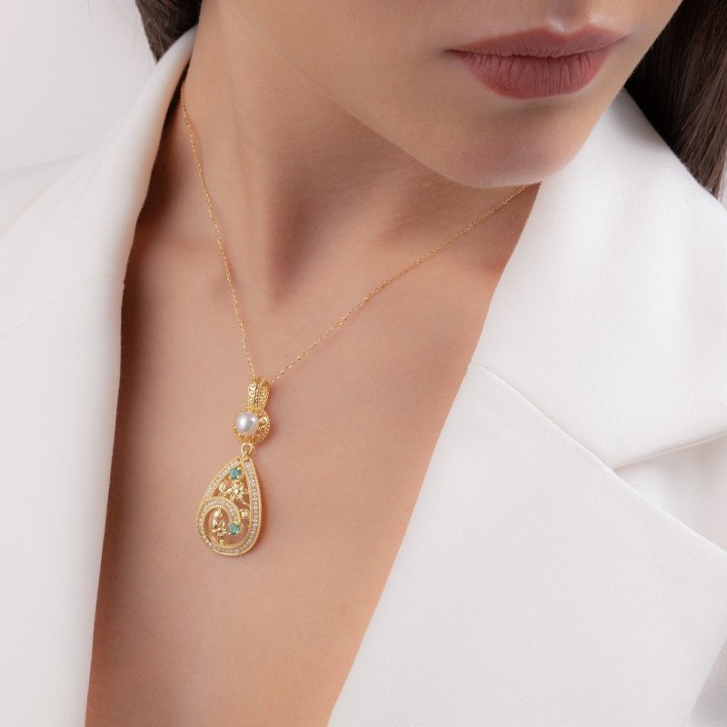 Il ciondolo a goccia in Oro 9 kt Þ realizzato a mano in Italia. Il design Þ reso ancora pi¨ prezioso dalle perle incastonate ad arte e dalle pietre preziose: zaffiri, smeraldi o rubini. Uno stile vintage ma allo stesso tempo contemporaneo, un gioiello per le occasioni importanti che rimane nella memoria di chi lo indossa per sempre.
