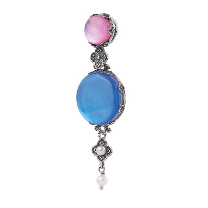 Un raffinato ciondolo che riproduce una ninfea dai petali chiusi, con la parte centrale esaltata da una pietra lucente e sfaccettata. La contromaglia Þ completamente celata dal colore tenue di una gemma incastonata tra piccoli fregi esempio di preziosa manualitÓ.