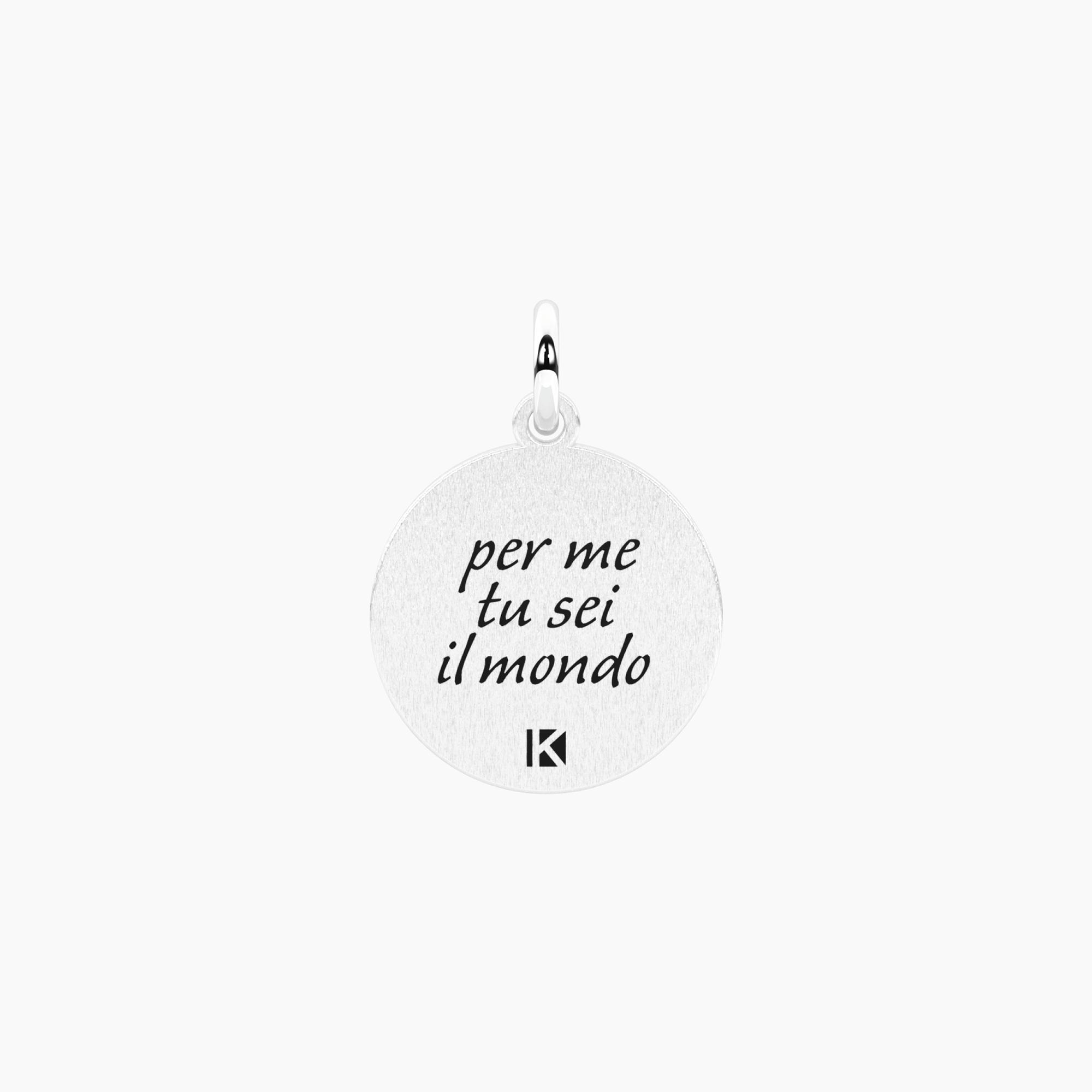 Ciondolo tondo in acciaio satinato con scritta "Per il mondo sei mia mamma. Per me, tu sei il mondo".