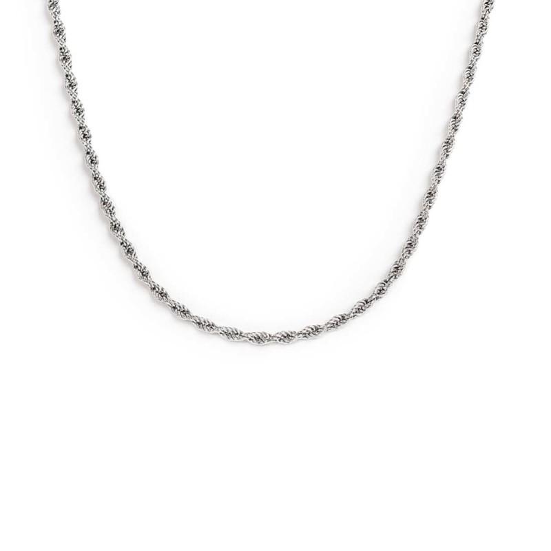 Collana con catena a corda con spessore 2,5 mm. Lunghezza totale 50 cm regolabile tramite cursore da 50 cm a 40 cm. Marlù logo tag presente all' estremità.