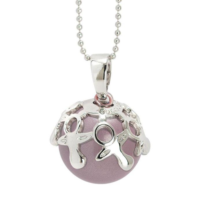 Collana Mya Boccadamo,in bronzo rodiato con boule sonora smaltata color rosa perlato (diametro cm 2) e coppetta decorativa rodiata con ciucci. Duplice indosso: 1 filo - cm 100 / 2 fili - cm 50.Collezione Angelomio. L'articolo Þ completo di astuccio e certificato di garanzia della durata di 2 anni, valido presso qualsiasi centro assistenza autorizzato.