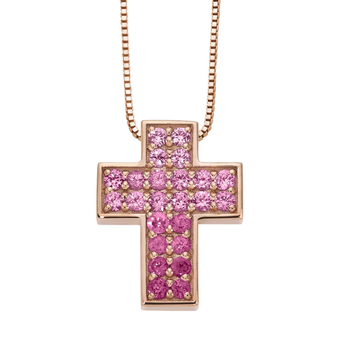 Collana in Oro 18kt con CrocÞ PavÞ di Zaffiri Rosa