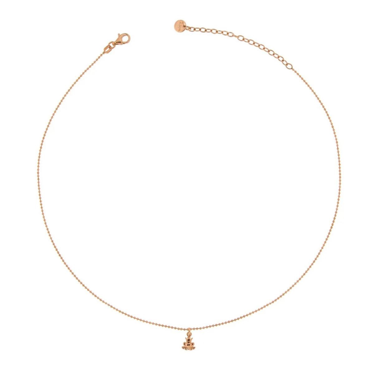 Collana pendente della collezione Rue Des Mille I Sogni Son Desideri da donna. Colore: oro Rosè. Il gioiello è in argento 925‰ con placcatura oro Rosè 18kt composto da catena con soggetto bombato a forma di principe ranocchio. Misura 40 cm con chiusura a moschettone.