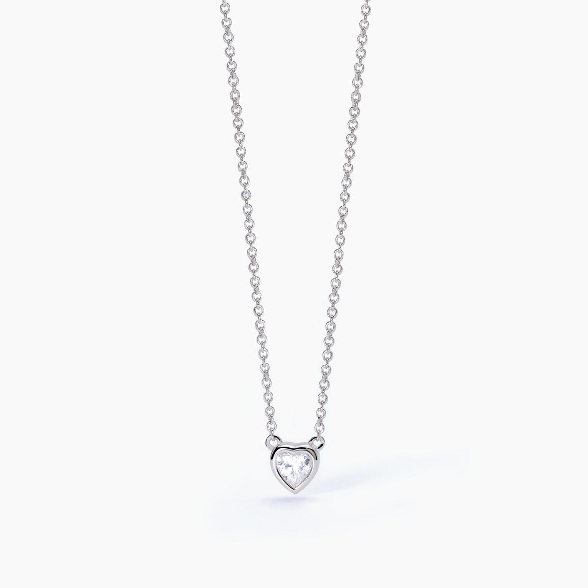 Girocollo da donna in argento rodiato con catena forzatina e pendente con zircone bianco taglio cuore.