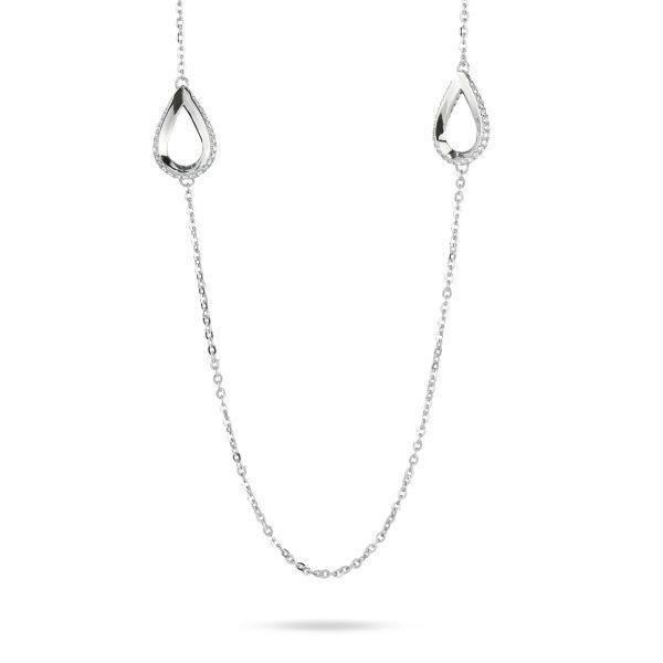 Collana rodiata con moduli a forma di goccia definita da zirconi.