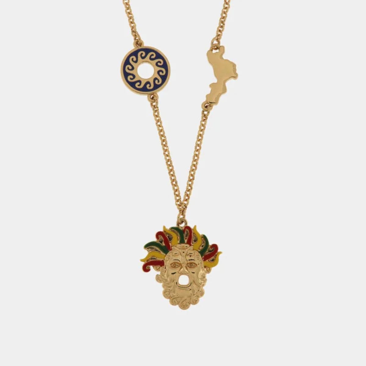 Collana in Metallo con maschera pendente e simboli regione Calabria e sole