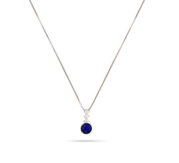 Collana pendente in Argento 925 con grande zircone blu e zirconi bianchi