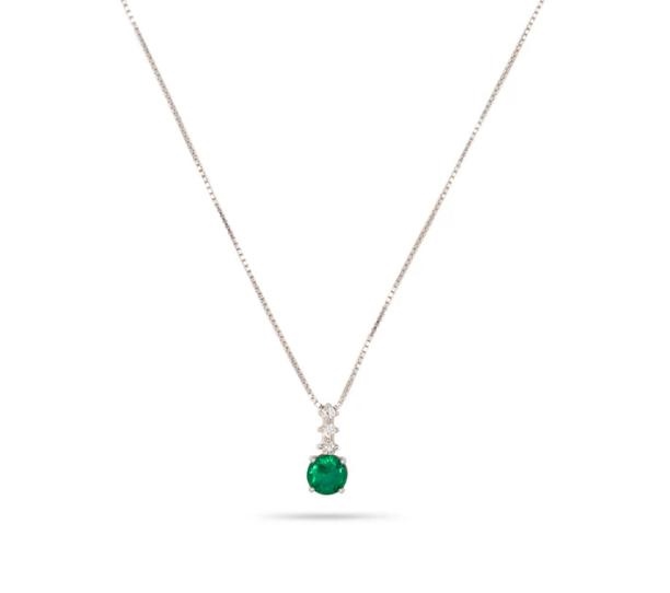 Collana pendente in Argento 925 con grande zircone verde e zirconi bianchi