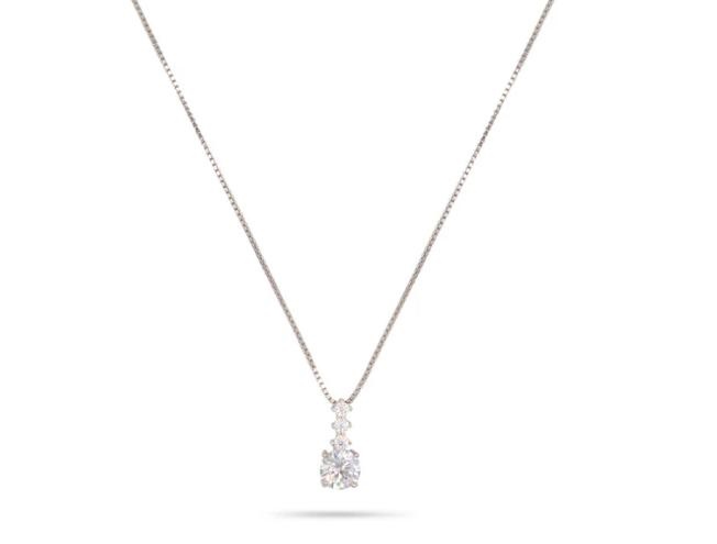 Collana pendente in Argento 925 con grande zircone bianco e zirconi bianchi
