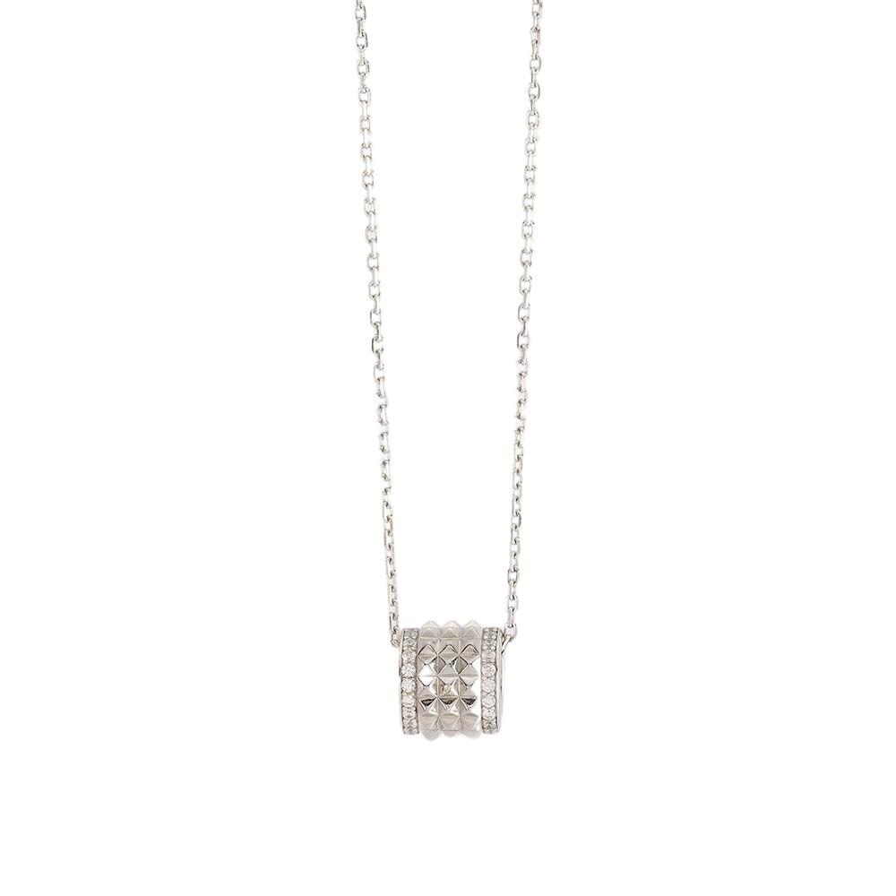 Collana rolò in argento con pendente a forma di cilindro con borchie e zirconi.