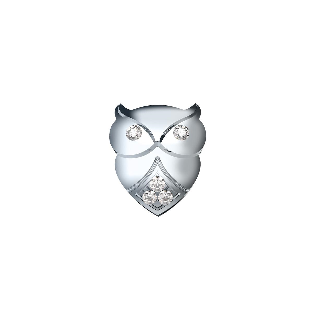 ciondolo a forma di gufetto della collezione Elements di DonnaOro, realizzato in oro bianco 750 millesimi (18 carati) e impreziosito da diamanti da 0.02 carati.