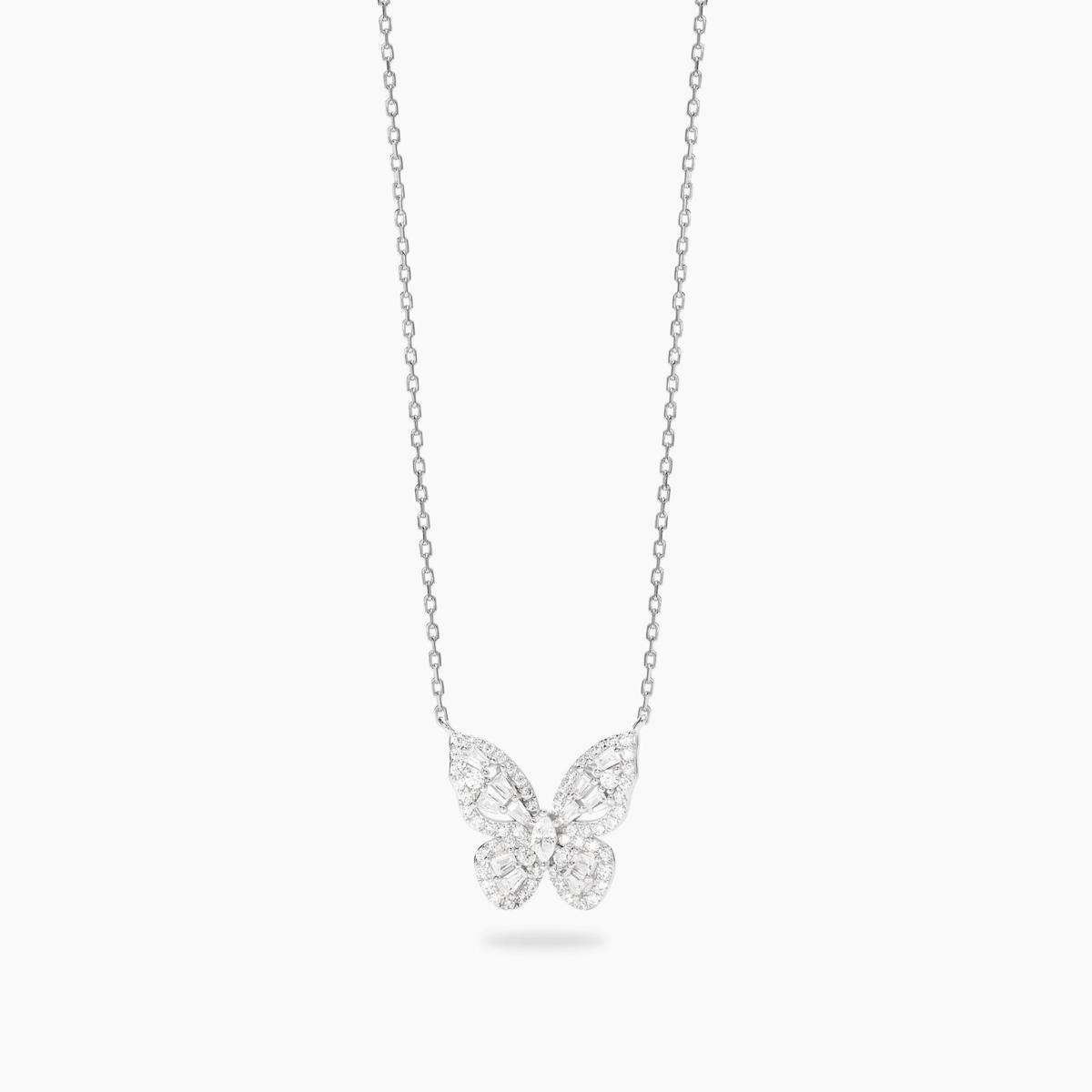 Girocollo regolabile in argento rodiato con farfalla in zirconi bianchi.