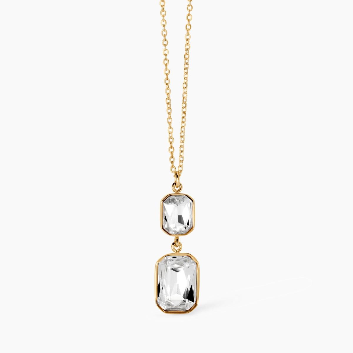 Girocollo regolabile in acciaio dorato con cristalli rettangolari bianchi.