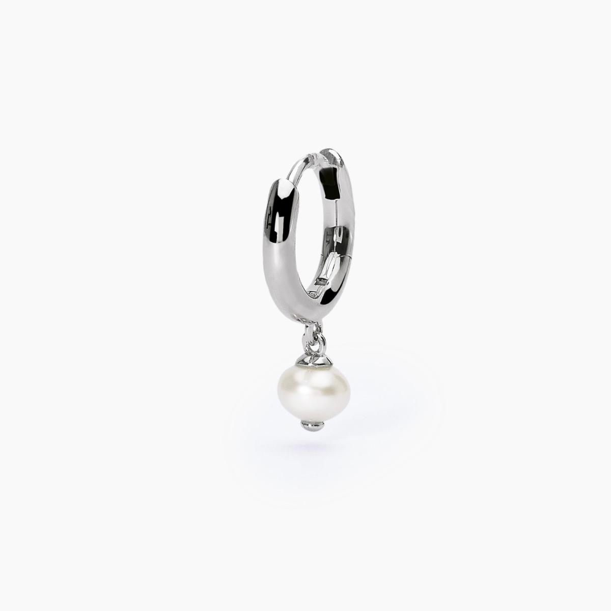 Mono orecchino a cerchio con perla coltivata pendente