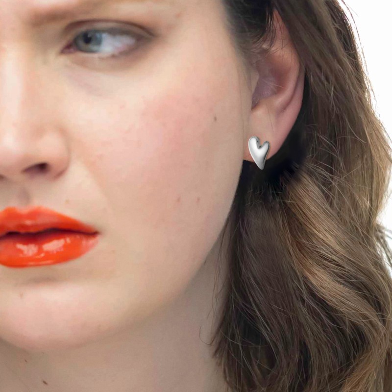 Mono orecchino a lobo in acciaio a forma di cuore irregolare martellato con misura 1,1*1,2 cm. Marlù logo laserato sul retro. Disponibile in acciaio e acciaio.