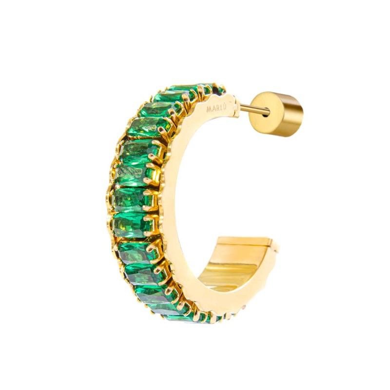 Mono Orecchino Dorato Tennis Cerchio Verde