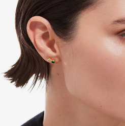 Orecchini a bottone con cristallo e argento sterling placcato oro 18 carati. Dimensioni del motivo 1x0,4 cm della collezione Illume.