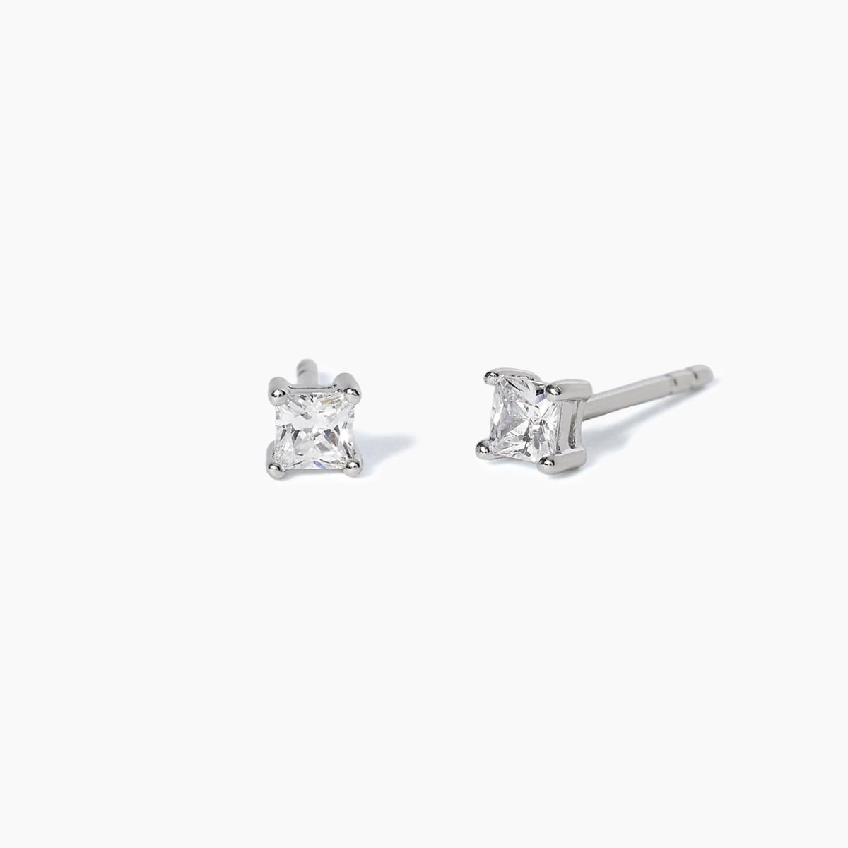 Orecchini a lobo in argento con punto luce in zircone quadrato.