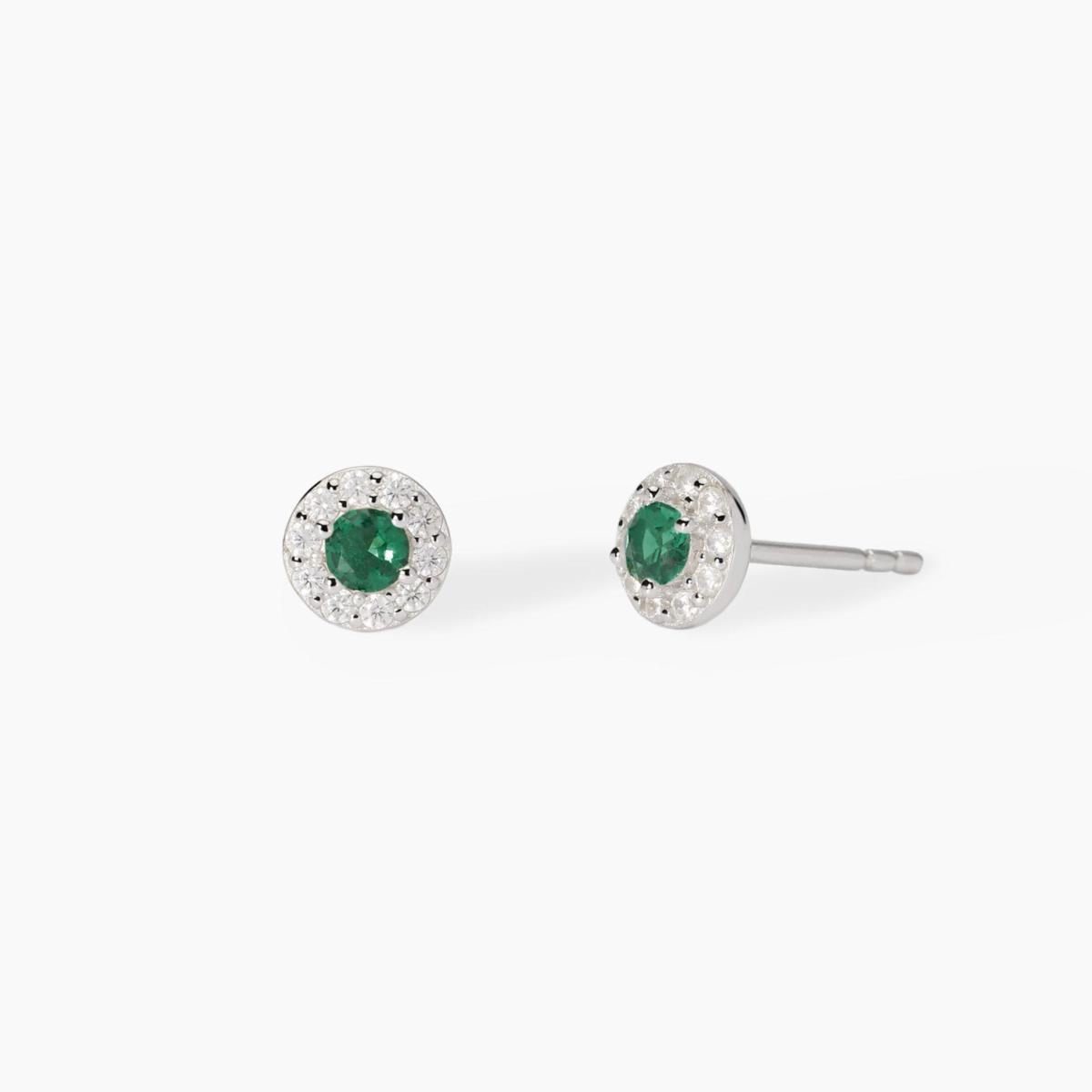 Orecchini a lobo in argento e zirconi bianchi e smeraldo sintetico.