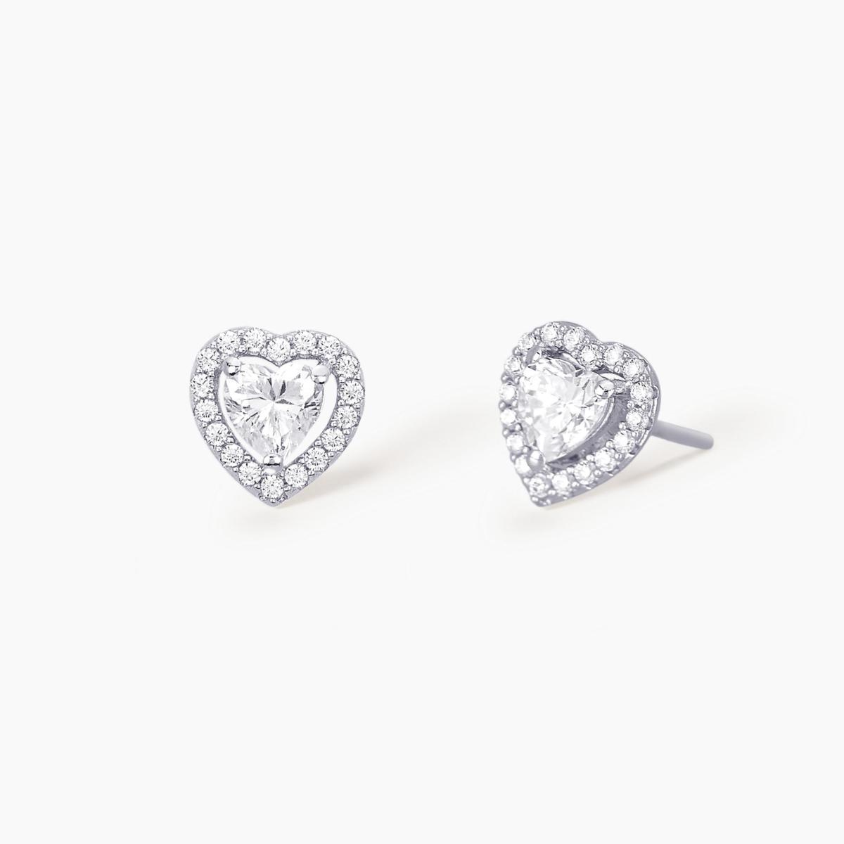 Orecchini a lobo in argento con cuore in zirconi.