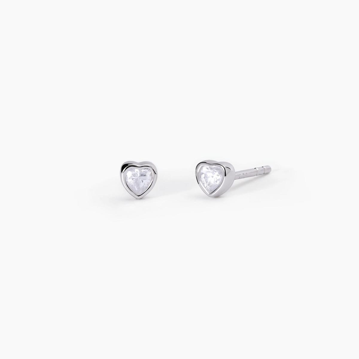 Orecchini da donna a lobo in argento rodiato con zirconi bianchi taglio cuore.
