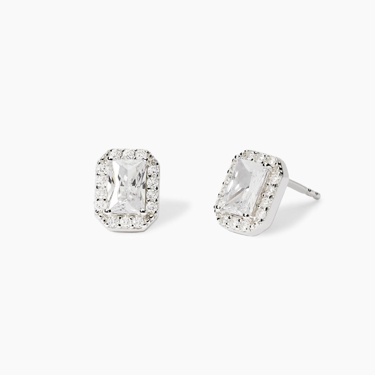 Orecchini a lobo da donna in argento rodiato con zircone taglio ottagonale e zirconi bianchi.