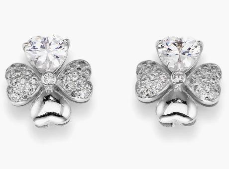 Orecchini Quadricuore in Argento 925 con zirconi bianchi - Rodio - Ï 1cm