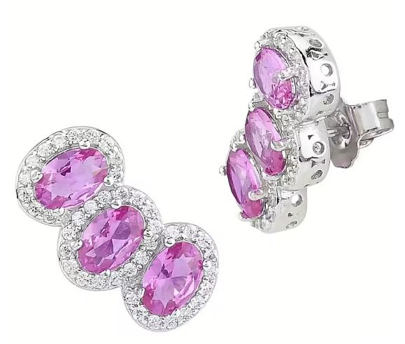 Orecchini da donna di Boccadamo della collezione Sophie. Orecchini rodiati a lobo con fila di tre cristalli ovali, color rubino, circondati da zirconi bianchi. Il materiale Þ argento. Dimensioni: cristallo cm 0,5; lunghezza cm 1,5. Chiusura: a farfalla.